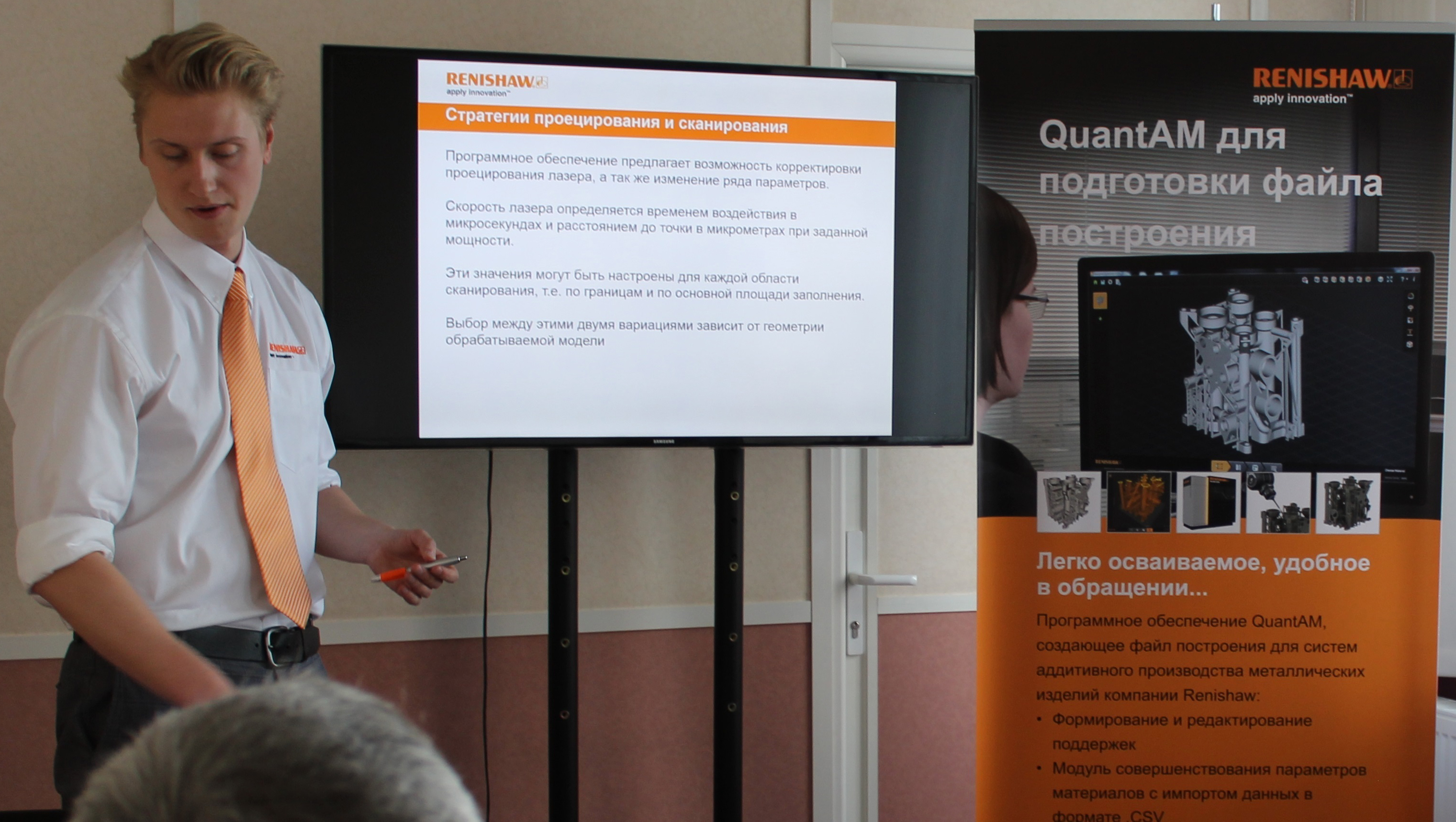 Семинар проходил штаб-квартире компании в г. Москва, где компанией Renishaw были представлены новые направления деятельности: аддитивное производство по средству 3D-печати металлических изделий для различных отраслей промышленности и систем вакуумного литья деталей из различных полимеров, стеклонаполненного полиамида или деталей с использованием восковых моделей для литья по выплавляемым восковым моделям.
